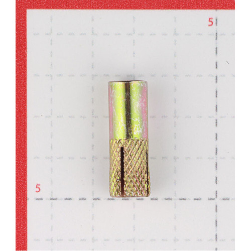 Один из самых простых видов анкеров, но при этом способен выдерживать умеренные и умеренно тяжелые нагрузки. Простая установка и высокая надежность крепления. Применяется для крепления в такие материалы как бетон, натуральный камень, кирпич.\n\nПри забивании распорного конуса с помощью специального инструмента происходит расклинивание втулки, приводящее к анкеровке. При последующем вкручивании болта или шпильки происходит \nбольшее смещение распорного конуса, увеличивая распор втулки. Не подлежит демонтажу.