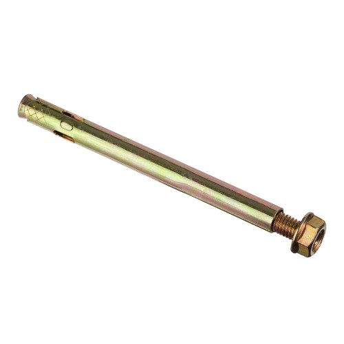 Предназначен для крепления различных конструкций – отбойников, лифтов и подъёмников, колонн и опор, фахверков, элементов фасадных конструкций и прочих элементов к основанию из бетона, природного камня или полнотелого кирпича.\nОцинкованное покрытие обеспечит защиту от коррозии. Анкерный болт с гайкой (втулочный анкер) оснащен фиксирующей гильзой длина которой равна размерам стального стержня. На хвостовой части шпильки выполнена клинообразная головка. При завинчивании гайки она смещается по резьбовой части. В результате перемещения происходит распирание втулки. Конструктивные особенности такого вида крепежа позволяют использовать его в легких видах бетонов с ячеистой структурой, а также в кирпиче, изготовленном из обожженной глины.\n\nПредставляют собой металлическую разрезную трубку и стержень, на одном конце которого находится специальная конструкция для расклинивания трубки, с другой стороны – резьбовая часть с гайкой. Головка болта может быть шестигранной (под гаечный ключ) или иметь любую другую форму.
