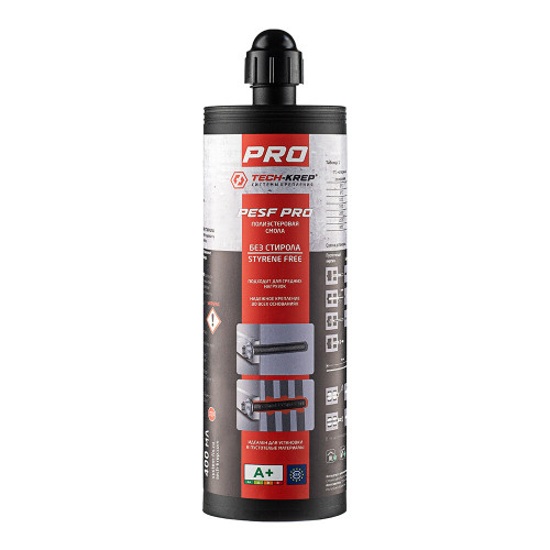 Подходит для высоких нагрузок. На основе полиэстера. Без стирола – без запаха (можно использовать в закрытых помещениях).ПреимуществаНе создает предварительного напряжения в бетоне;Используется совместно с металлическими анкерными элементами (резьбовыми шпильками, болтами, арматурными прутками и т.п.) и сетчатыми гильзами для пустотелых материалов;Отсутствие напряжений в базовом материале позволяет устанавливать их в условиях минимальных краевых и межосевых расстояний. Имеет Европейский Сертификат ЕТА иТехническое свидетельство Минстроя № 7037-24.\n\n