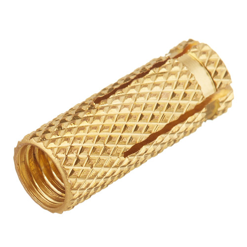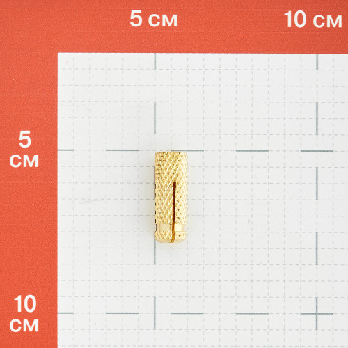 Один из самых простых видов анкеров, но при этом способен выдерживать средние и умеренно тяжелые нагрузки. Простая установка и высокая надежность крепления. Используется при монтаже инженерных сетей и других изделий и конструкций в бетонные основания, кирпичную кладку, природный камень. Имеют высокую коррозионную стойкость, поэтому могут устанавливаться в помещениях с повышенной агрессивностью среды (чердаки, паркинги и т.д.). Анкеры оснащены метрической резьбой и могут использоваться с любыми резьбовыми элементами (болты, резьбовые шпильки). Изготовлен из латуни\n\nКомпактная конструкция латунного анкера уменьшает необходимый\nобъем сверления, способствуя быстрому монтажу.\n Специальная структура поверхности анкера предотвращает его\nпроворачивание в просверленном отверстии, что упрощает монтаж\n Внутренняя резьба позволяет применять стандартные метрические винты или резьбовые шпильки, снимать их заподлицо с поверхностью и использовать точки крепления повторно. Это обеспечивает большую гибкость решений.\n Латунный анкер можно слегка расширить перед монтажом, ввернув в него метрический болт или шпильку.