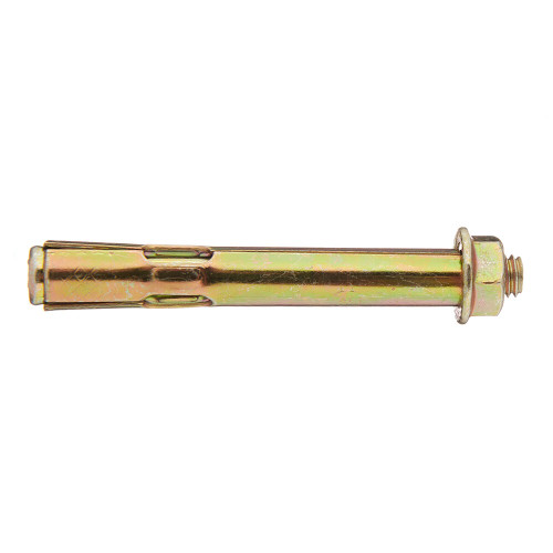 Предназначен для крепления различных конструкций – отбойников, лифтов и подъёмников, колонн и опор, фахверков, элементов фасадных конструкций и прочих элементов к основанию из бетона, природного камня или полнотелого кирпича.\nОцинкованное покрытие обеспечит защиту от коррозии. Анкерный болт с гайкой (втулочный анкер) оснащен фиксирующей гильзой длина которой равна размерам стального стержня. На хвостовой части шпильки выполнена клинообразная головка. При завинчивании гайки она смещается по резьбовой части. В результате перемещения происходит распирание втулки. Конструктивные особенности такого вида крепежа позволяют использовать его в легких видах бетонов с ячеистой структурой, а также в кирпиче, изготовленном из обожженной глины.\n\nПредставляют собой металлическую разрезную трубку и стержень, на одном конце которого находится специальная конструкция для расклинивания трубки, с другой стороны – резьбовая часть с гайкой. Головка болта может быть шестигранной (под гаечный ключ) или иметь любую другую форму.