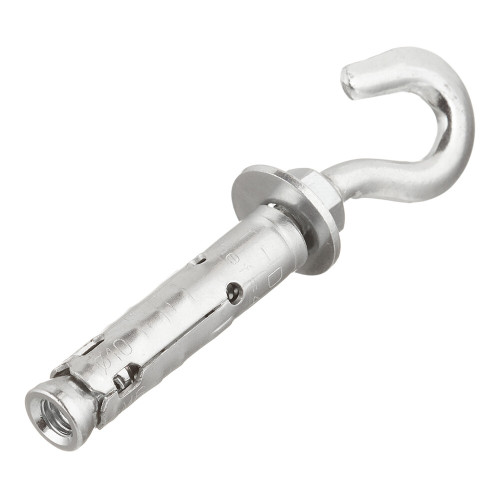 Предназначен для подвешивания тяжелых элементов и конструкций в таких материалах, как бетон прочностью от В20 до В50 в нерастянутой зоне, кроме того, пригоден для бетона В12 (с понижением несущей способности), строительного камня плотной текстуры. Удобный в установке анкер с внутренней резьбой. Анкер оснащен крюком, что позволяет использовать его при подвешивании различных изделий (спортивный инвентарь, люстрыи пр.), а также использовать при сборке такелажных систем (растяжка тросов, канатов, цепей)МаркировкаDX ZN – Анкер-гильза с крюком.\n\nОптимизированная геометрия анкера сводит к минимуму усилия при монтаже и позволяет использовать анкер в очень узких пространствах.\n Четырехраспорная гильза равномерно распределяет усилие распора внутри отверстия. \n Шестигранный болт с классом прочности 8.8 позволяет применять анкерный болт при повышенных вырывных и сдвиговых нагрузках.\n Каждый анкер оснащен маркировкой, необходимой при монтаже.ФункционированиеАнкер DX применяется при предварительном монтаже (сначала устанавливается анкер в отверстие, после устанавливается прикрепляемая деталь)Во время затяжки конус перемещается в распорную втулку и расширяет её прижимая к стенкам просверленного отверстияПри сквозном монтаже отверстие в прикрепляемой детали должно быть таким же либо большим, чем диаметр анкера.