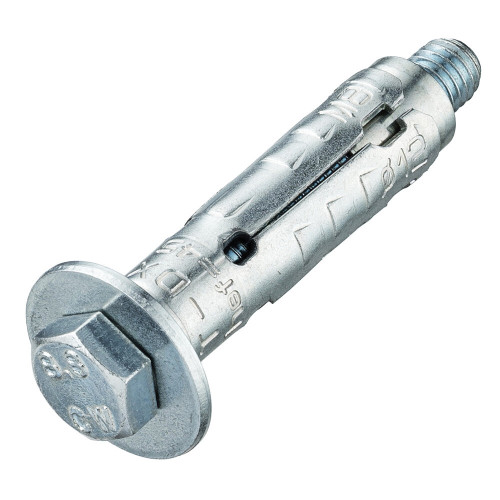 Предназначен для монтажа тяжелых элементов и конструкций в таких материалах, как бетон прочностью от В20 до В50 в нерастянутой зоне, кроме того, пригоден для бетона В12 (с понижением несущей способности), строительного камня плотной текстуры. Удобный в установке анкер с внутренней резьбой. Анкер оснащен шестигранным болтом классом прочности 8.8, что позволяет использовать крепление при воздействии высоких нагрузок.\nИзготовлен из оцинкованной стали.МаркировкаDX ZN – Анкер-гильза с болтом.\n\nОптимизированная геометрия анкера сводит к минимуму усилия при монтаже и позволяет использовать анкер в очень узких пространствах.\n Четырехраспорная гильза равномерно распределяет усилие распора внутри отверстия. \n Шестигранный болт с классом прочности 8.8 позволяет применять анкерный болт при повышенных вырывных и сдвиговых нагрузках.\n Каждый анкер оснащен маркировкой, необходимой при монтаже.ФункционированиеАнкер DX применяется при предварительном монтаже (сначала устанавливается анкер в отверстие, после устанавливается прикрепляемая деталь)Во время затяжки конус перемещается в распорную втулку и расширяет её прижимая к стенкам просверленного отверстияПри сквозном монтаже отверстие в прикрепляемой детали должно быть таким же либо большим, чем диаметр анкера.