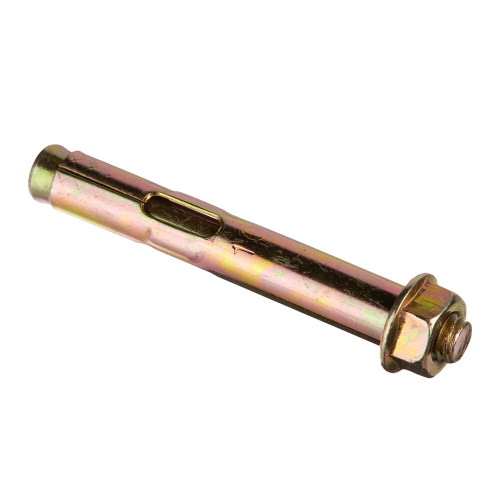Предназначен для крепления различных конструкций – отбойников, лифтов и подъёмников, колонн и опор, фахверков, элементов фасадных конструкций и прочих элементов к основанию из бетона, природного камня или полнотелого кирпича.\nОцинкованное покрытие обеспечит защиту от коррозии. Анкерный болт с гайкой (втулочный анкер) оснащен фиксирующей гильзой, длина которой равна размерам стального стержня. На хвостовой части шпильки выполнена клинообразная головка. При завинчивании гайки она смещается по резьбовой части. В результате перемещения происходит распирание втулки. Конструктивные особенности такого вида крепежа позволяют использовать его в легких видах бетонов с ячеистой структурой, а также в кирпиче, изготовленном из обожженной глины.\n\nПредставляют собой металлическую разрезную трубку и стержень, на одном конце которого находится специальная конструкция для расклинивания трубки, с другой стороны – резьбовая часть с гайкой. Головка болта может быть шестигранной (под гаечный ключ) или иметь любую другую форму.
