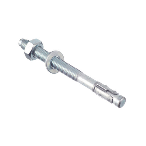 Предназначен для крепления различных конструкций, таких как опорные колонны, ограждения, сидения, поручни, лестницы к поверхностям из природного камня, бетона и полнотелого кирпича.\nПри затягивании распорная гильза расширяется, создавая фрикционный зажим со стенками отверстия.\nОцинкованный – для сухих помещений и временных креплений на улице.\nИспользование установочного инструмента делает монтаж S-KA более быстрым и безопасным.МаркировкаS-KA (Клиновой анкер).\n\nСпособ монтажаПросверлите отверстие прямо сквозь прикрепляемый материал буром или сверлом по бетону. Прочистите отверстие от пыли щеткой или под напором воздуха. Забейте анкер молотком плотно прижимая его к прикрепляемому материалу. Закрутите гайку анкера накидным ключом на 17.