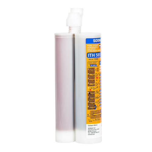 Предназначен для монтажа и крепления тяжелых элементов и конструкций в полнотелые материалы, такие как, неармированный бетон, высокоармированный бетон, натуральный камень.\nИзготовлен из эпоксидной смолы. Крепления с помощью химических анкеров на основе эпоксидной смолы выдерживают высокие и экстремально высокие нагрузки. \nПредставляет собой пластиковый баллон, с двумя параллельными тубами. Одним компонентом является отвердитель, вторым – чистая эпоксидная смола.\nДвухкомпонентный клеевой состав на основе эпоксидной смолы, имеет допуск на установку в сжатой и растянутой зонах бетона, натуральном камне, имеет допуск работы в мокром и затопленном бетоне, а также работы под водой. Работает с разными диаметрами шпилек и арматуры. \nНе создает напряжения в материале основания, благодаря чему может использоваться близко от края основания.\nПрекрасно работает в больших отверстиях и со шпильками большого диаметра.\nПодходит для соединения с вклеиваемыми арматурными стержнями, которые используются в узлах строительных конструкций, для работ под водой, для монтажа в потолок и в отверстиях, просверленных алмазным сверлом.\nОбладает исключительно высокой химической стойкостью.\nХимический состав не содержит стирола, практически не имеет запаха, отличается низким содержанием ЛОС A+ и высокой степенью огнестойкости до F240.\nСостав имеет одобрение ETA Option 1, сертификат NSF (использование при контакте с питьевой водой), а также сертифицирован для использования в сейсмоопасных регионах С1/С2.\nПоставляется в комплекте с одним соплом (насадкой).\nХраните частично использованный картридж, не снимая смеситель. Перед повторным использованием смеситель необходимо заменить.\n\n