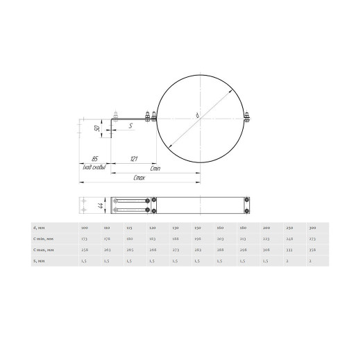 Хомут Дымок для дымоходов d120 мм с креплением к стене AISI 439