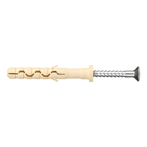 Предназначен для легких креплений (небольшие нагрузки) в твердые материалы: полнотелый кирпич, бетон, природный камень.\nНейлон обеспечивает надежное сцепление с материалом основания. Резьбовой оцинкованный гвоздь повышенной прочности заранее установлен в дюбель.\n\nОсобенностиПозволяет производить быстрый сквозной монтаж. Нейлон дюбель обеспечивает надёжное сцепление с материалом основания. Гвоздь повышенной прочности.Способ монтажаПросверлите отверстие, установите дюбель до основания манжеты, забейте молотком.