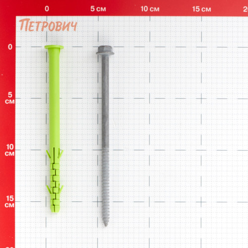 Дюбель фасадный универсальный предназначен для сквозного монтажа элементов фасадных конструкций. Устанавливается непосредственно через прикрепляемую деталь. Для крепления в материалы – бетон, полнотелый кирпич, пустотелый кирпич, керамзитобетон, пенобетон, газобетон. Удлиненное тело дюбеля позволяет закреплять элементы фасадных конструкций, а также широкие детали. Усиленная конструкция специального шурупа предотвращает возможность поломки в процессе установки и гарантирует высокие нагрузочные характеристики.\nТехническое свидетельство Минстроя России.\nГлубина сверления = длина дюбеля – толщина прикрепляемого материала + 10 мм.\nЕсли нет возможности прочистить отверстие, то увеличьте глубину сверления на 20 мм.\nРекомендуется устанавливать фасадные дюбели при температуре выше 0°C. \nПри отрицательных температурах, перед установкой храните дюбель в теплом помещении. Монтаж1. Просверлите отверстие 10 мм (при установке в пено/газо бетон рекомендуется диаметр сверла 9 мм).2. Прочистите отверстие.3. Установите дюбель в отверстие сквозь прикрепляемый материал.4. Закрутите шуруп до плотного соприкосновения пресс-шайбы шурупа с бортиком дюбеля.\n\n