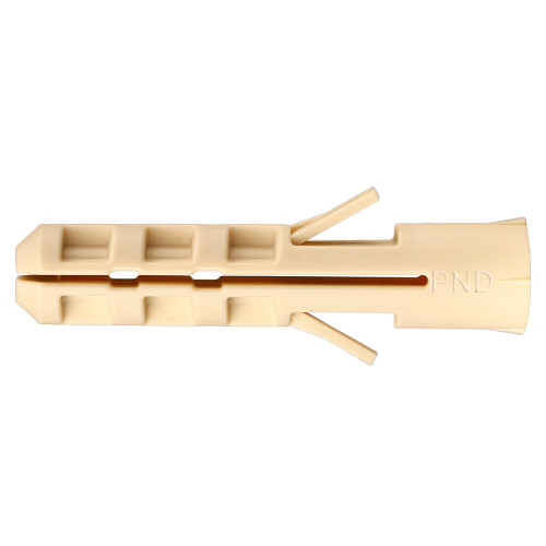 Предназначен для легких креплений (небольшие нагрузки) в бетон и полнотелый кирпич.\nВ дюбель рекомендуется устанавливать универсальный саморез, так как угол, шаг и заточка резьбы такого самореза производит правильное раскрытие дюбеля в отверстии, что позволяет выдерживать большие нагрузки в отличие от черных саморезов (ГД).\n\nОсобенностиДоп.описаниеСпециальная форма выступов и распорные элементы удерживают дюбель в отверстии при монтаже, и препятствуют прокручиванию дюбеля в отверстии.Способ монтажаПросверлите отверстие буром или сверлом по бетону. Вставьте дюбель в отверстие, установите прикрепляемый материал или деталь и закрутите универсальный саморез. В момент закручивания самореза дюбель расширяется в отверстии.