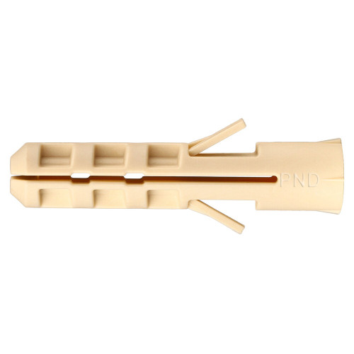 Предназначен для легких креплений (небольшие нагрузки) в бетон и полнотелый кирпич.\nВ дюбель рекомендуется устанавливать универсальный саморез, так как угол, шаг и заточка резьбы такого самореза производит правильное раскрытие дюбеля в отверстии, что позволяет выдерживать большие нагрузки в отличие от черных саморезов (ГД).\n\nОсобенностиСпециальная форма выступов и распорные элементы удерживают дюбель в отверстии при монтаже, и препятствуют прокручиванию дюбеля в отверстии.Способ монтажаПросверлите отверстие буром или сверлом по бетону. Вставьте дюбель в отверстие, установите прикрепляемый материал или деталь и закрутите универсальный саморез. В момент закручивания самореза дюбель расширяется в отверстии.