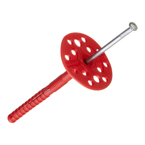 Предназначен для крепления теплоизоляционных изделий толщиной к внутренним и наружным поверхностям зданий, различного назначения, в том числе в системах вентилируемых фасадов и колодезной кладке, в такие основания, как тяжелый и легкий бетон, полнотелый керамический и силикатный кирпич, керамзитобетонный блок. За счет широкой шляпки дюбель часто называют "парашют" или тарельчатый дюбель. Конструкция широкой шляпки дюбеля плотно прижимает теплоизоляцию, отверстия позволяют утопить дюбель в клее без потери эластичности шляпки. В комплекте с дюбелем поставляется металлический оцинкованный гвоздь.\n\n