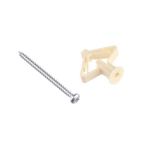 Предназначен для крепления во всех листовых материалах толщиной более 12 мм (в т.ч. в гипсокартоне) и может быть использован в кирпиче и бетоне.\nИзготовлен из специального пластика, который выдерживает температурные режимы от -70°C до +110°C и не реагирует на изменение влажности.Комплектуется универсальным саморезом с круглой головкойдиаметр самореза 4 мм, длина 60 мм.МаркировкаPLA.\n\nОсобенностиКонструкция анкера препятствует перекручиванию и перетягиванию при монтаже.Способ монтажаПросверлите отверстие соответствующим диаметром сверла, сожмите крылья анкера и установите его в отверстие. Установите прикрепляемый материал и закрутите шуруп.