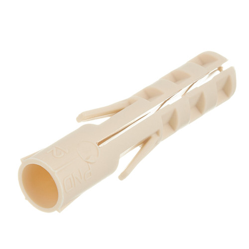 Предназначен для легких креплений (небольшие нагрузки) в бетон и полнотелый кирпич.\nВ дюбель рекомендуется устанавливать универсальный саморез, так как угол, шаг и заточка резьбы такого самореза производит правильное раскрытие дюбеля в отверстии, что позволяет выдерживать большие нагрузки в отличие от черных саморезов (ГД).\n\nОсобенностиДоп.описаниеСпециальная форма выступов и распорные элементы удерживают дюбель в отверстии при монтаже, и препятствуют прокручиванию дюбеля в отверстии.Способ монтажаПросверлите отверстие буром или сверлом по бетону. Вставьте дюбель в отверстие, установите прикрепляемый материал или деталь и закрутите универсальный саморез. В момент закручивания самореза дюбель расширяется в отверстии.