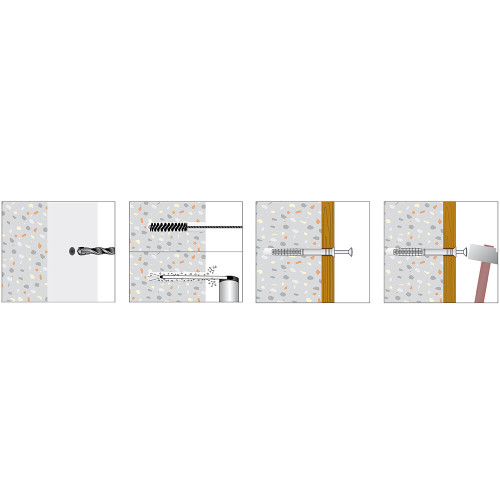 Пластиковый дюбель-гвоздь применяется для быстрого и надежного крепления различных изделий к полнотелым и пустотелым основаниям (бетон, полнотелый кирпич, камень, пустотелый кирпич). Устанавливается в предварительно просверленное отверстие ударным способом с использованием ручного молотка. Благодаря крестообразному шлицу и резьбе, можно с легкостью произвести демонтаж при необходимости.\nИзготовлен из нейлона и углеродистой стали с антикоррозийным цинковым покрытием.МаркировкаYZ – Дюбель-гвоздь.\n\nПреимуществаУстановка производится ударным способом, что значительно экономит время, обеспечивая быстрый серийный монтаж. требуется перфоратор (ударная дрель) и молоток.Предусмотренные на гвозде крестообразный шлиц и резьба позволяют без особых усилий выворачивать его при необходимости последующего демонтажа.Широкий диапазон диаметров, полезной длины и формы головки, дают возможность подбора дюбеля для конкретной задачи.