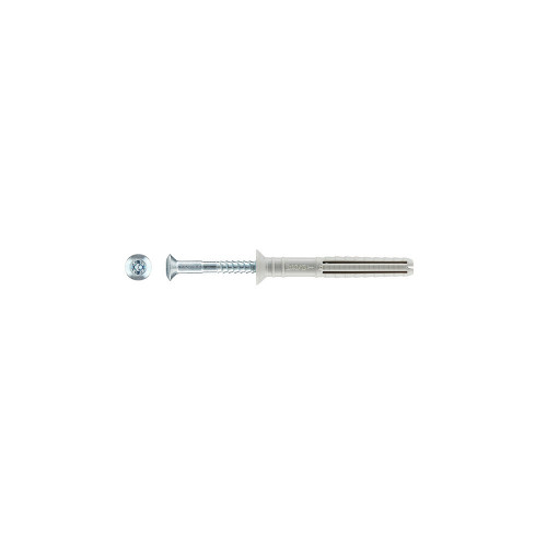 Пластиковый дюбель-гвоздь применяется для быстрого и надежного крепления различных изделий к полнотелым и пустотелым основаниям (бетон, полнотелый кирпич, камень, пустотелый кирпич). Устанавливается в предварительно просверленное отверстие ударным способом с использованием ручного молотка. Благодаря крестообразному шлицу и резьбе, можно с легкостью произвести демонтаж при необходимости.\nИзготовлен из нейлона и углеродистой стали с антикоррозийным цинковым покрытием.МаркировкаYZ – Дюбель-гвоздь.\n\nПреимуществаУстановка производится ударным способом, что значительно экономит время, обеспечивая быстрый серийный монтаж. требуется перфоратор (ударная дрель) и молоток.Предусмотренные на гвозде крестообразный шлиц и резьба позволяют без особых усилий выворачивать его при необходимости последующего демонтажа.Широкий диапазон диаметров, полезной длины и формы головки, дают возможность подбора дюбеля для конкретной задачи.