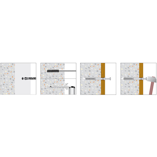 Пластиковый дюбель-гвоздь применяется для быстрого и надежного крепления различных изделий к полнотелым и пустотелым основаниям (бетон, полнотелый кирпич, камень, пустотелый кирпич). Устанавливается в предварительно просверленное отверстие ударным способом с использованием ручного молотка. Благодаря крестообразному шлицу и резьбе, можно с легкостью произвести демонтаж при необходимости.\nИзготовлен из нейлона и углеродистой стали с антикоррозийным цинковым покрытием.МаркировкаYZ – Дюбель-гвоздь.\n\nПреимуществаУстановка производится ударным способом, что значительно экономит время, обеспечивая быстрый серийный монтаж. требуется перфоратор (ударная дрель) и молоток.Предусмотренные на гвозде крестообразный шлиц и резьба позволяют без особых усилий выворачивать его при необходимости последующего демонтажа.Широкий диапазон диаметров, полезной длины и формы головки, дают возможность подбора дюбеля для конкретной задачи.