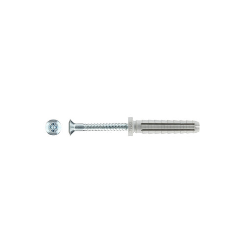Пластиковый дюбель-гвоздь применяется для быстрого и надежного крепления различных изделий к полнотелым и пустотелым основаниям (бетон, полнотелый кирпич, камень, пустотелый кирпич). Устанавливается в предварительно просверленное отверстие ударным способом с использованием ручного молотка. Благодаря крестообразному шлицу и резьбе, можно с легкостью произвести демонтаж при необходимости.\nИзготовлен из нейлона и углеродистой стали с антикоррозийным цинковым покрытием.МаркировкаYZ – Дюбель-гвоздь.\n\nПреимуществаУстановка производится ударным способом, что значительно экономит время, обеспечивая быстрый серийный монтаж. требуется перфоратор (ударная дрель) и молоток.Предусмотренные на гвозде крестообразный шлиц и резьба позволяют без особых усилий выворачивать его при необходимости последующего демонтажа.Широкий диапазон диаметров, полезной длины и формы головки, дают возможность подбора дюбеля для конкретной задачи.