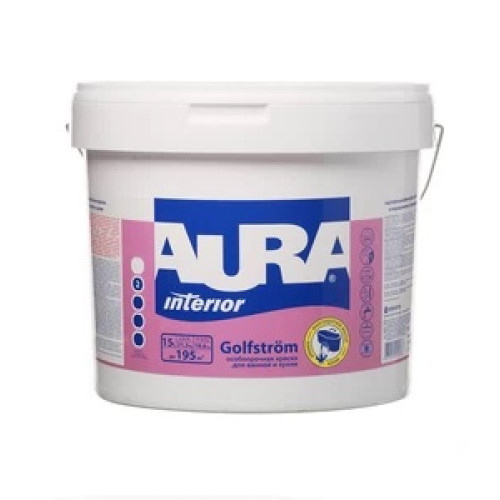 Краска моющаяся Aura Interior Golfstrom особопрочная для ванной и кухни база А белая 15 л