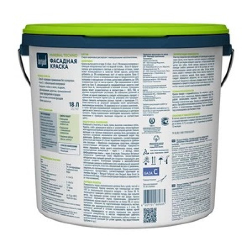 Краска фасадная Bergauf Mineral Techno эластичная акриловая база А белая 18 л