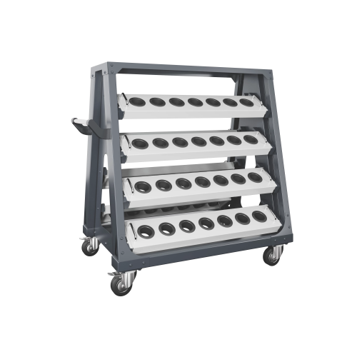 Представляет собой мобильное устройство, предназначенное для хранения и транспортировки различных инструментов и оснастки, используемых в станках. Изготовлена из прочного металла, что обеспечивает долговечность и устойчивость к механическим повреждениям. Тележка оснащена колесами, которые облегчают её перемещение по рабочему пространству.