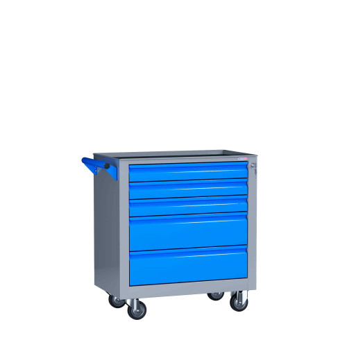 В корпусе тележки, расположено пять ящиков разного объема. Ящики установлены на шариковых направляющих полного выдвижения.