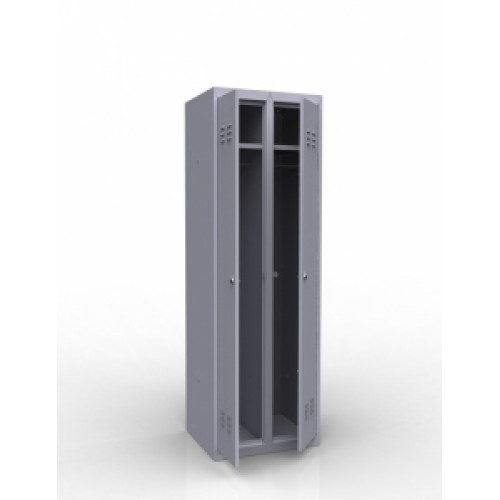 Шкаф имеет две секции, каждая из которых оснащается полкой для головных уборов, пластиковыми перекладиной для вешалок и двумя крючками для одежды, проушиной для навесных замков. Размер секций обеспечивает комфортное размещение верхней одежды, в том числе зимней. Конструкция предусматривает возможность установки дополнительной полки для обуви.