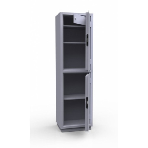 Многосекционный бухгалтерский шкаф позволяет хранить документы в отдельных секциях. Каждая секция запирается на индивидуальный ключ, таким образом, одним шкафом могут пользоваться сразу несколько человек. Наример, верхнюю секцию может использовать главный бухгалтер, нижние — менеджеры.