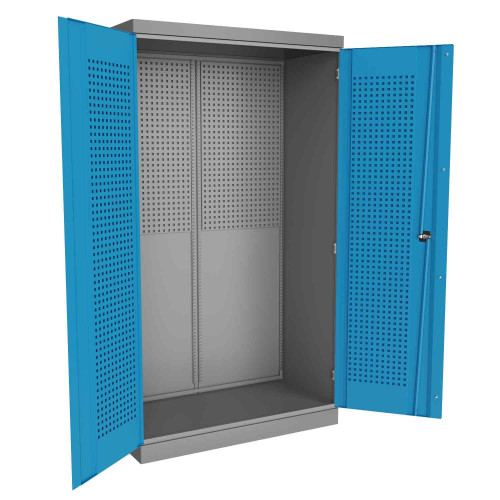 Максимальная распределенная нагрузка на шкаф составляет 400кг. Максимальная равномерно распределённая нагрузка на полку 50кг, выдвижной ящик 40кг. Шкаф оснащен замком «Евролок». Окраска элементов корпуса осуществляется порошковой полимерной краской: RAL 7037 (пыльно-серый), а дверцы RAL 5015 (небесно-синий) – складская программа, RAL 3003 (красный) – под заказ. Все шкафы отгружаются со склада в разобранном виде. Инструкцию по сборке вы можете скачать с нашего сайта.