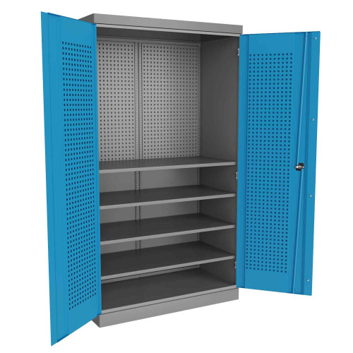 Шкаф данной модели может комплектоваться либо полками Technic (1) и ящиками Technic (1) – по всей ширине шкафа, при этом максимальное количество полок и ящиков по высоте - 13 штук. При установке перегородки, шкаф делится на две части и может комплектоваться полками Technic (2) и ящиками Technic (2), при этом максимальное количество полок и ящиков по высоте - 13 штук в два ряда. Максимальная распределенная нагрузка на шкаф составляет 400кг. Максимальная равномерно распределённая нагрузка на полку 50кг, выдвижной ящик 40кг. Шкаф оснащен замком «Евролок». Окраска элементов корпуса осуществляется порошковой полимерной краской: RAL 7037 (пыльно-серый), а дверцы RAL 5015 (небесно-синий) – складская программа, RAL 3003 (красный) – под заказ. Все шкафы отгружаются со склада в разобранном виде. Инструкцию по сборке вы можете скачать с нашего сайта.