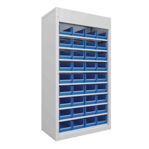 Шкаф ячеистого хранения с полками и лотками.