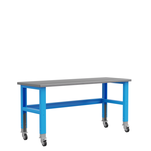 Дополнительно, изделия могут комплектоваться колесными опорами, перфорированными панелями, полками и держателями для инструментов.Конструкция опор позволяет производить регулировку по высоте от 800 до 1000 мм, что позволяет использовать подкатные инструментальные тележки «Верстакофф ®» серии 795. Сборный, усиленный каркас из профилированной листовой стали толщиной 1 мм, и столешница из листовой стали толщиной 2 мм, несут максимальную нагрузочную способность до 700 кг. Столы промышленные металлические окрашены порошковой краской.