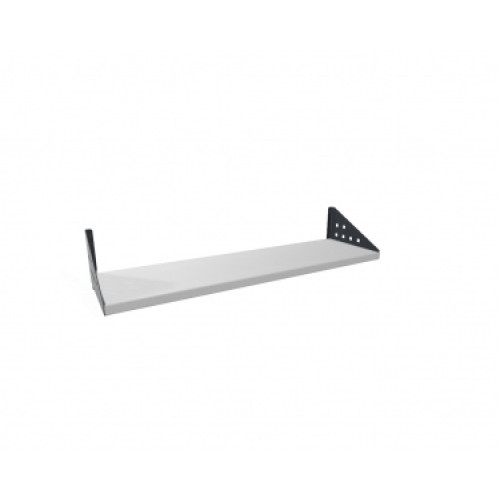 Полки предназначены для установки с внутренней части шкафа на заднюю и боковые стенки корпуса через овальные отверстия в гибах панелей, при помощи 4-х винтов М6х10мм. и самоконтрящихся гаек М6. Полки выполнены из конструкционной листовой оцинкованной стали ГОСТ 14918 толщиной 1.0мм., окрашены порошковой краской, стандартный цвет полок RAL 7047, кронштейнов RAL 7024, окраска дополнительно защищает и придаёт необходимый вид. На Кронштейнах полки возможна установка вешалок от изделий Систем Хранения. Полку можно устанавливать не только в ролетном шкафу, но и непосредственно на стену, подобрав и применив необходимый крепёж. Общая равномерно-распределённая нагрузка на полку до 80кг.