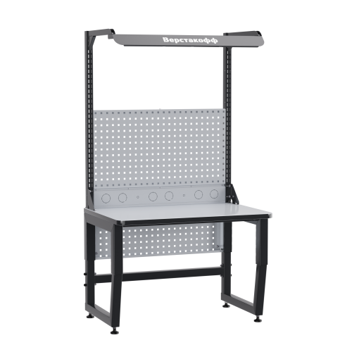 Для наилучшей освещенности при работе с мелкими электронными компонентами рабочее место комплектуется блоком освещения. В его составе - специальный промышленный светильник с необходимой цветовой температурой и световым потоком, обеспечивающим оптимальные условия работы. Блок освещения располагается над рабочей поверхностью на регулируемых (по высоте и по вылету) кронштейнах