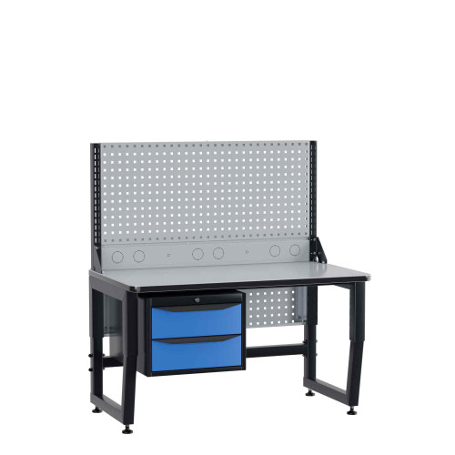 Несущая конструкция стола – это промышленный ESD каркас. Сочетание опорных, несущих и усиливающих элементов из металла, обеспечивают высокую надежность конструкции при интенсивной промышленной эксплуатации с распределенными нагрузками на рабочее место до 500 кг. Регулируемые опоры с возможностью плавной регулировки по высоте позволяют установить удобную высоту рабочей поверхности от 700мм до 850мм. Специальное ESD полимерное покрытие элементов каркаса с сопротивлением 1 МОм обеспечивают антистатические свойства изделия