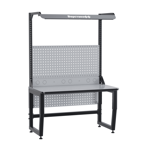 Для наилучшей освещенности при работе с мелкими электронными компонентами рабочее место комплектуется блоком освещения. В его составе - специальный промышленный светильник с необходимой  цветовой температурой и световым потоком, обеспечивающим оптимальные условия работы. Блок освещения располагается над рабочей поверхностью на регулируемых (по высоте и по вылету) кронштейнах