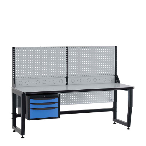 Несущая конструкция стола – это промышленный ESD каркас. Сочетание опорных, несущих и усиливающих элементов из металла, обеспечивают высокую надежность конструкции при интенсивной промышленной эксплуатации с распределенными нагрузками на рабочее место до 500 кг.  Регулируемые опоры с возможностью плавной регулировки по высоте позволяют установить удобную высоту рабочей поверхности от 700мм до 850мм. Специальное ESD полимерное покрытие элементов каркаса с  сопротивлением 1 МОм обеспечивают антистатические свойства изделия