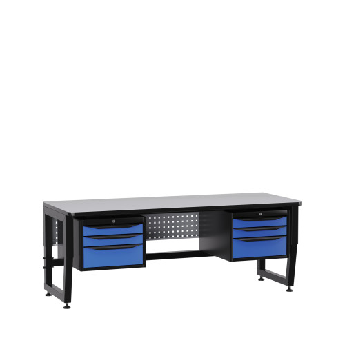 Несущая конструкция стола – это промышленный ESD каркас. Сочетание опорных, несущих и усиливающих элементов из металла, обеспечивают высокую надежность конструкции при интенсивной промышленной эксплуатации с распределенными нагрузками на рабочее место до 500 кг.  Регулируемые опоры с возможностью плавной регулировки по высоте позволяют установить удобную высоту рабочей поверхности от 700мм до 850мм. Специальное ESD полимерное покрытие элементов каркаса с  сопротивлением 1 МОм обеспечивают антистатические свойства изделия