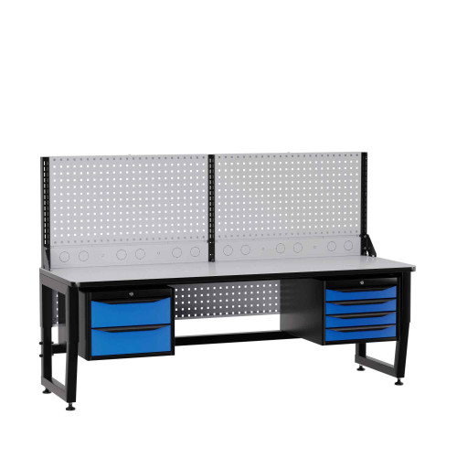 Несущая конструкция стола – это промышленный ESD каркас. Сочетание опорных, несущих и усиливающих элементов из металла, обеспечивают высокую надежность конструкции при интенсивной промышленной эксплуатации с распределенными нагрузками на рабочее место до 500 кг. Регулируемые опоры с возможностью плавной регулировки по высоте позволяют установить удобную высоту рабочей поверхности от 700мм до 850мм. Специальное ESD полимерное покрытие элементов каркаса с сопротивлением 1 МОм обеспечивают антистатические свойства изделия