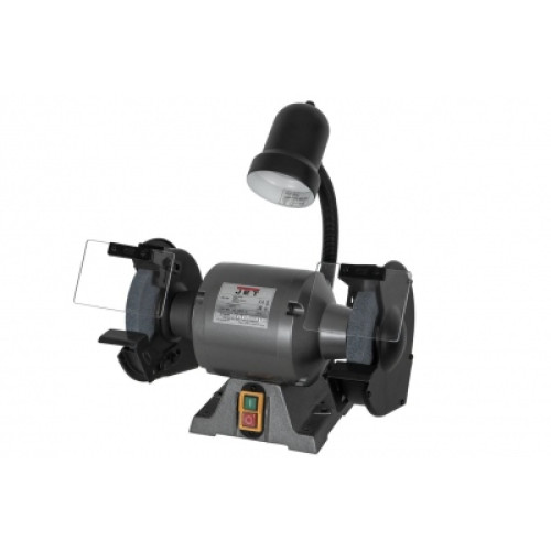 Jet JBG-150 — компактный заточной станок индустриального класса, произведенный на Тайване, работа для которого найдется в каждой мастерской, будь то заточка инструмента или обработка небольших заготовок, сделанных из практически любых материалов. Основные факторы, определяющие удобство работы с наждаком, — это запас мощности и отсутствие биений, поэтому требования к качеству исполнения конструкции весьма высоки, несмотря на её кажущуюся простоту. Заточной станок JBG-150 им полностью удовлетворяет: вал установлен в добротных пылеизолированных шариковых подшипниках, мотор обладает высокой по меркам класса мощностью и способен долго работать, не перегреваясь. Дополнительные факторы безопасности и удобства эксплуатации – лампа подсветки с гибким штативом, регулируемые прозрачные экраны и жёсткие стальные кожухи ограждения, на которых закреплены подручники.