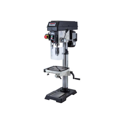 JWDP-12 — настольный сверлильный станок профессионального класса, подходящий для универсального (дерево и металл) применения. Основная отличительная черта этой модели – клиноременный вариатор, позволяющий плавно бесступенчато изменять скорость вращения шпинделя. Такая конструкция механизма ускоряет настройку в зависимости от диаметра сверления: вместо снятия и последующей установки ремня достаточно перевести рычаг, причем делают это, не выключая мотор. При этом фактическая скорость вращения шпинделя будет отображаться на цифровом дисплее, что особенно важно при работе с металлом, когда ограничения по частоте вращения режущего инструмента гораздо более строгие, чем при работе с деревом.