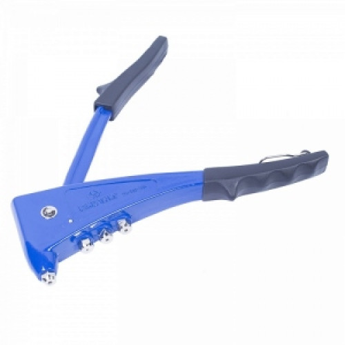 Приспособление имеет металлическую рабочую часть и удобные рукоятки с эргономичными накладками, выполненными по форме ладони. Для защиты от случайного срабатывания заклепочника на рукоятках предусмотрена металлическая петля-фиксатор.