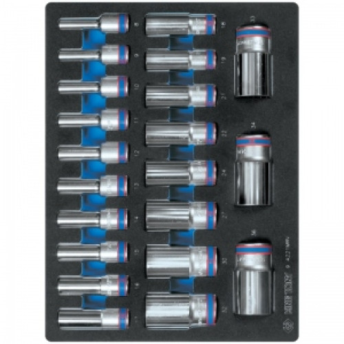• KING TONY Набор глубоких торцевых головок 1/2, двенадцатигранные, 8-36 мм, ложемент, 21 предмет
