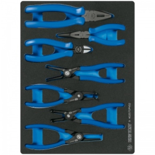 KING TONY Набор съемников стопорных колец, пассатижей и бокорезов, ложемент, 7 предметов