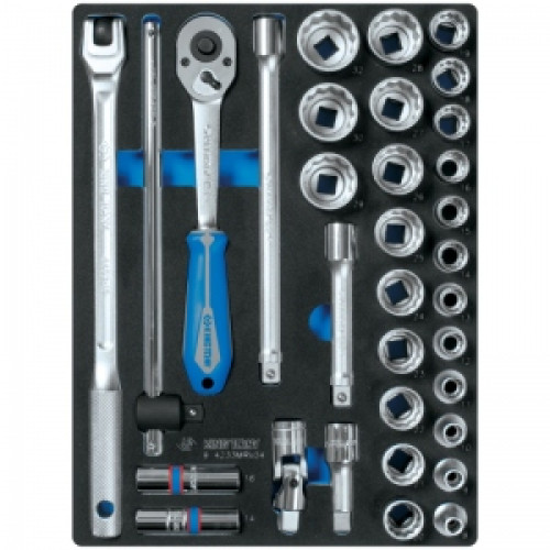 KING TONY Набор торцевых головок 1/2 с принадлежностями, двенадцатигранные, ложемент, 33 предмета