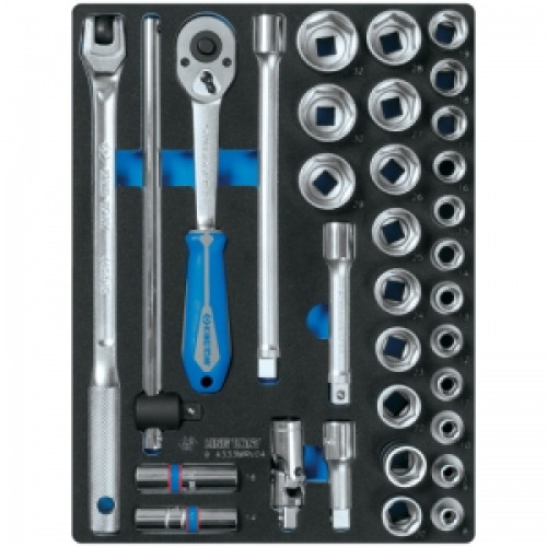 KING TONY Набор торцевых головок 1/2 с принадлежностями, шестигранные, ложемент, 33 предмета