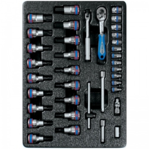| Набор с инструментом торговой марки KING TONY включает в себя торцевые головки и принадлежности, предназначен для монтажа и демонтажа крепёжных узлов различных изделий, устройств и агрегатов. Материал ложемента – ПВХ (поливинилхлорид). Изготовлен специально для комплектации инструментальной тележки. • Состав набора • Головка торцевая стандартная шестигранная 1/4", KING TONY серии 2335M: 4, 4.5, 5, 5.5, 6, 7, 8, 9, 10, 11, 12, 13 • Насадка (бита) торцевая 1/2", TORX, L = 60 мм KING TONY серии 4023: 20, 25, 27, 30, 40, 45, 50, 55, 60 • Насадка (бита) торцевая 1/2", HEX, L = 60 мм KING TONY серии 4025: 3, 4, 5, 6, 7, 8, 10, 12, 14 • Кардан 1/4" KING TONY 2792 • Держатель вставок (бит) 1/4"gt;1/4" KING TONY 2141 • Трещотка 1/4", 140 мм, 24 зубца, флажковая, фиксатор KING TONY 2779-55G • Удлинитель 1/4", 100 мм KING TONY 2221-04 • Удлинитель 1/4", 50 мм KING TONY 2221-02 • Вороток 1/4", 125 мм, с шарниром KING TONY 2452-05F • Вороток 1/4", 115 мм, скользящий KING TONY 2571-45 |