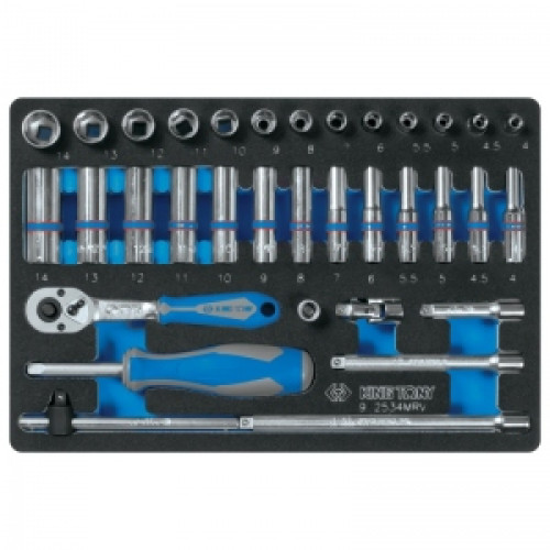 KING TONY Набор торцевых головок с принадлежностями 1/4, ложемент, 34 предмета