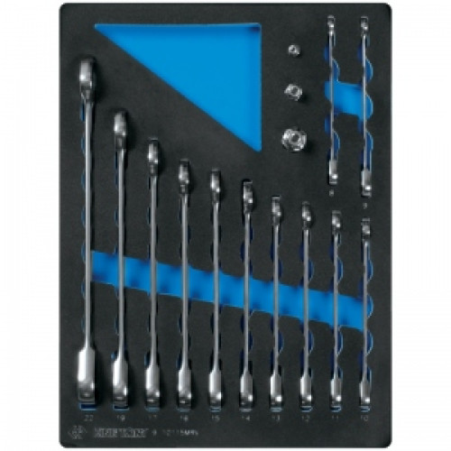 KING TONY Набор трещоточных комбинированных ключей, ложемент, 15 предметов