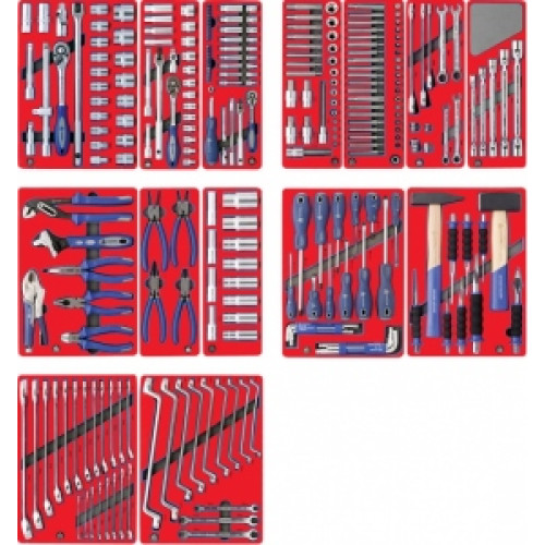 | • код 5-3006 Набор пассатижей, плоскогубцев и бокорезов, 6 предметов • код 5-3304 Набор съемников стопорных колец, 4 предмета • код 5-014012 Набор глубоких головок 1/2”, ложемент, 12 предметов |